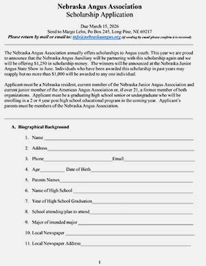 2026 Nebraska Angus Association Scholarship Application